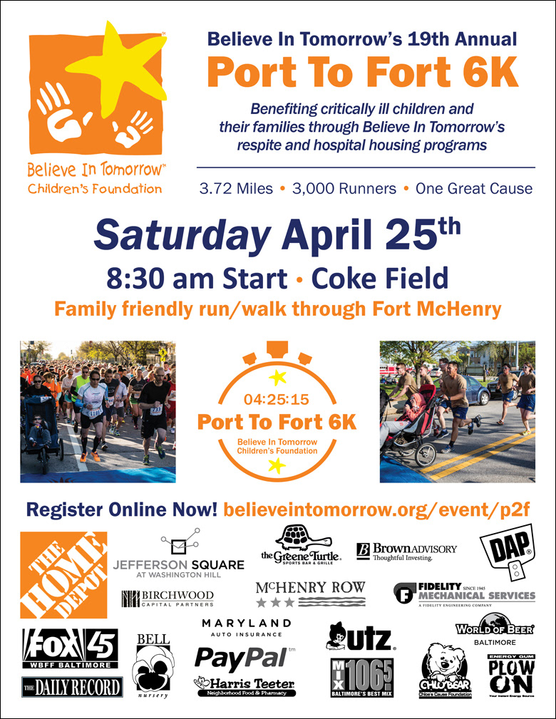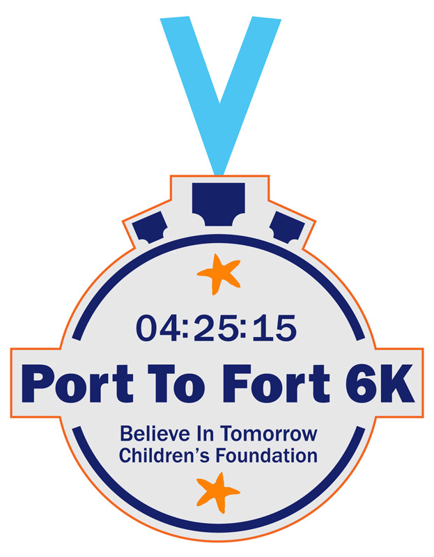 Believe In Tomorrow Children's Foundation Port to Fort 6k race. Designed all marketing pieces for the race such as, logo, t-shirt, flyers, poster, sponsorship forms, and race medals.