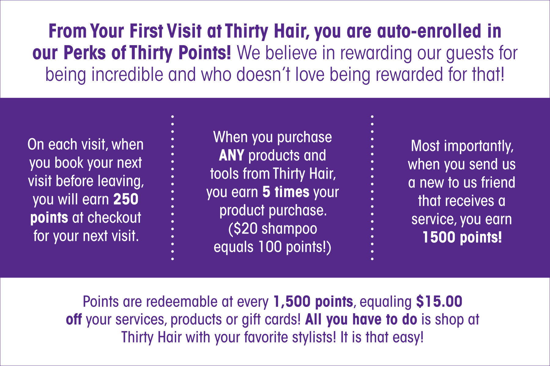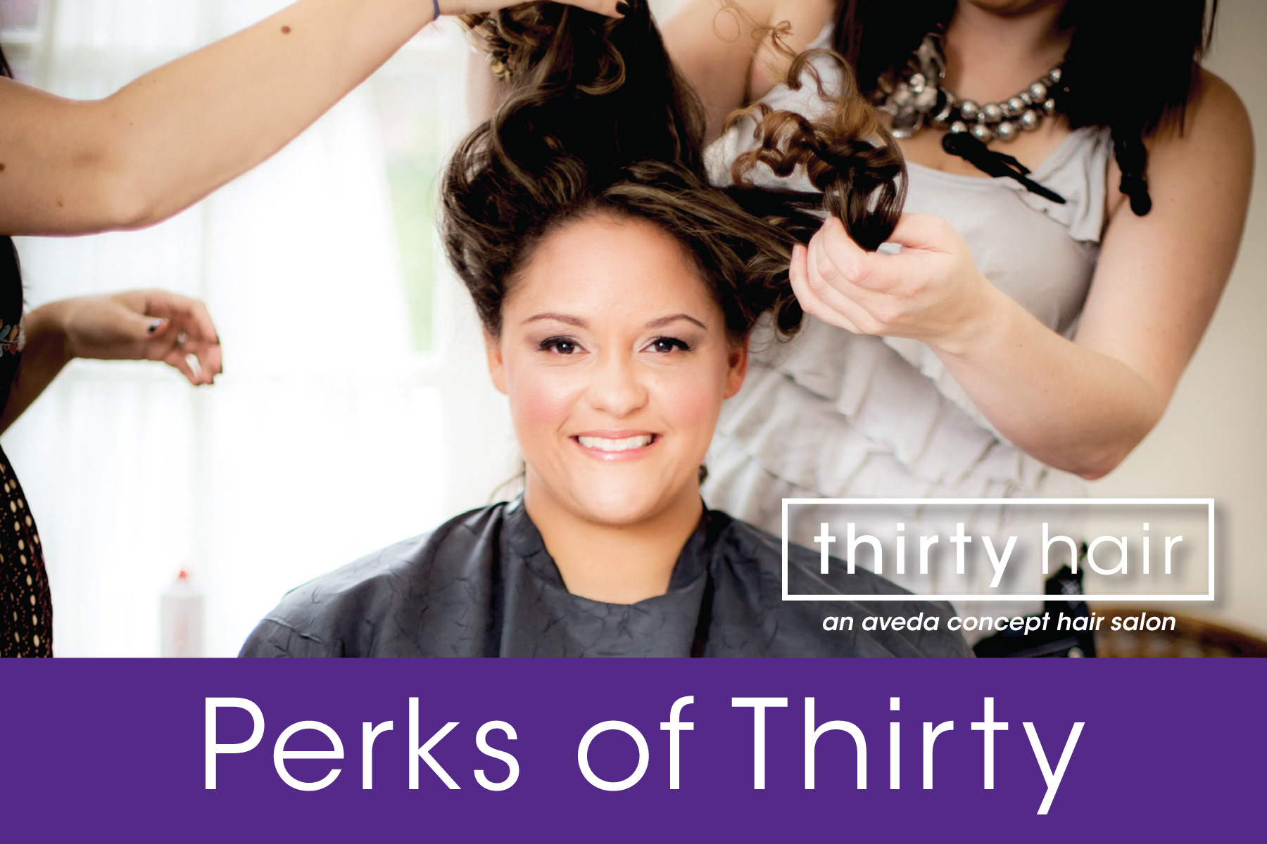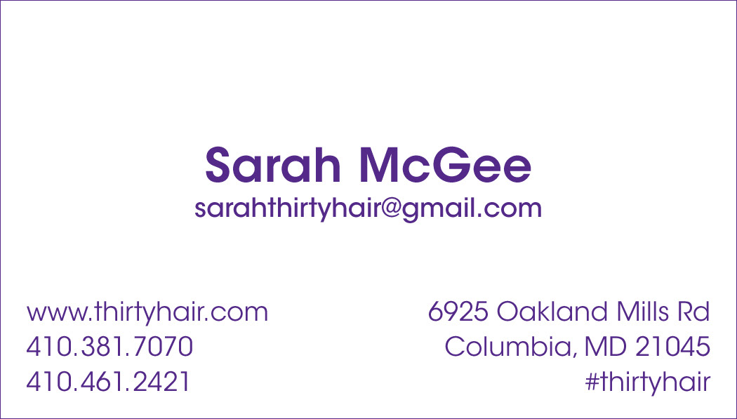 Designed logo, business cards, signage, and other marketing materials for thirty hair.